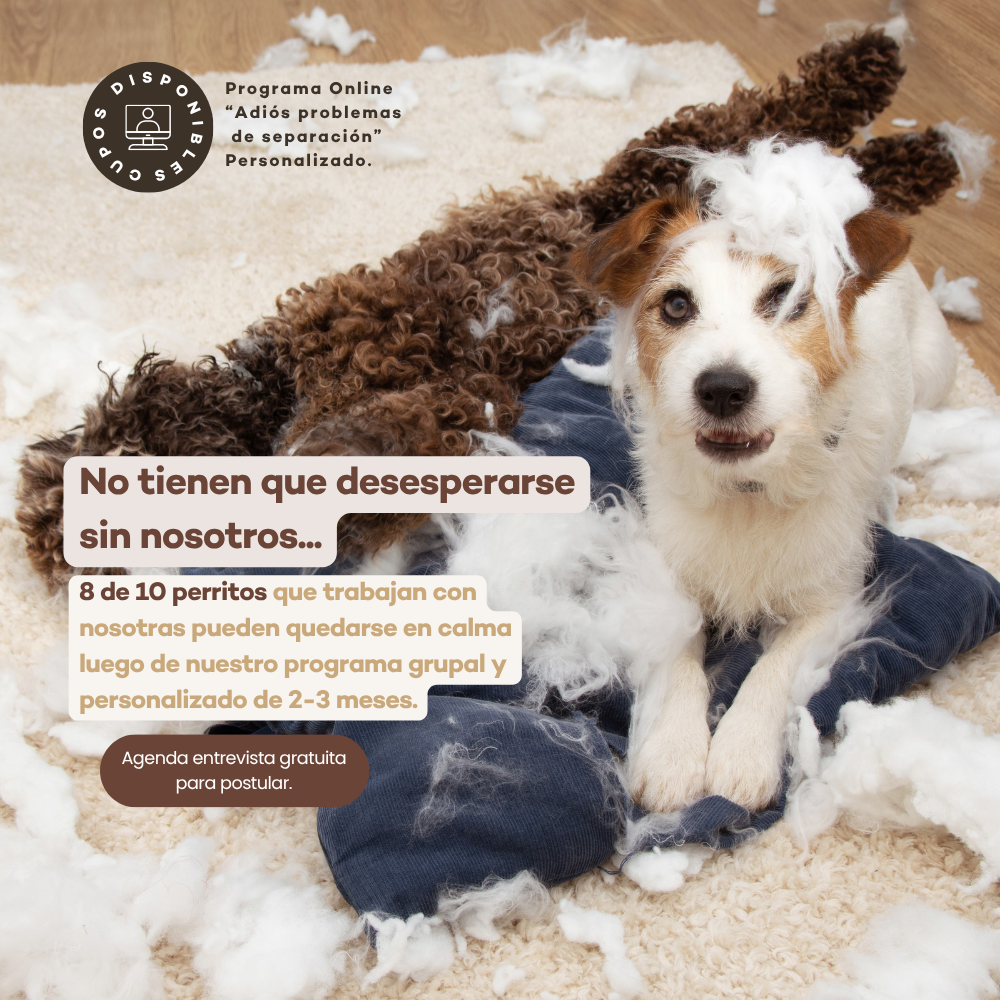 Descúbrelo con nuestro test gratuito y recibe recomendaciones. O accede a nuestro programa de excelencia "Adios problemas de separación", un programa personalizado de 2 meses en el que te aseguramos que tu perrito podrá aprender a quedarse solo.