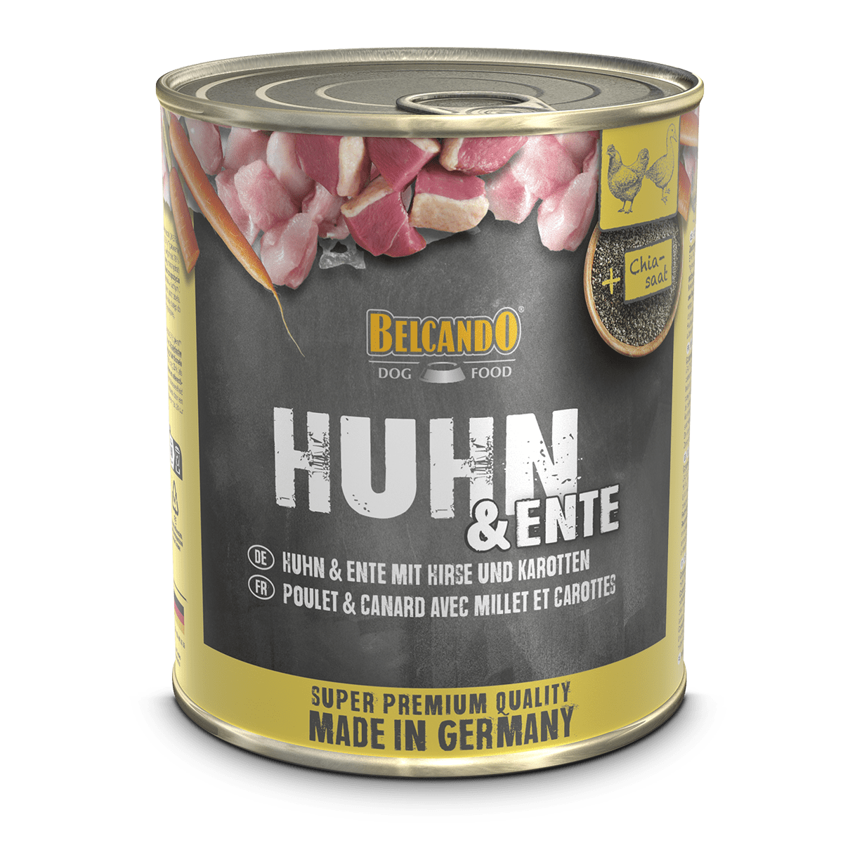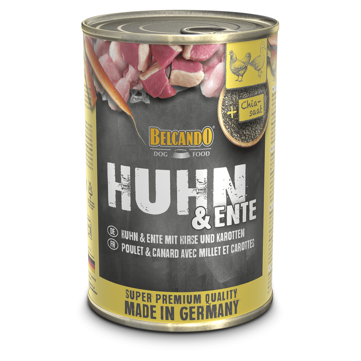 La comida húmeda de alta calidad para su perro. Disponible en muchas variedades diferentes y ricas, con ingredientes que adquirimos de agricultura Alemana de confianza.